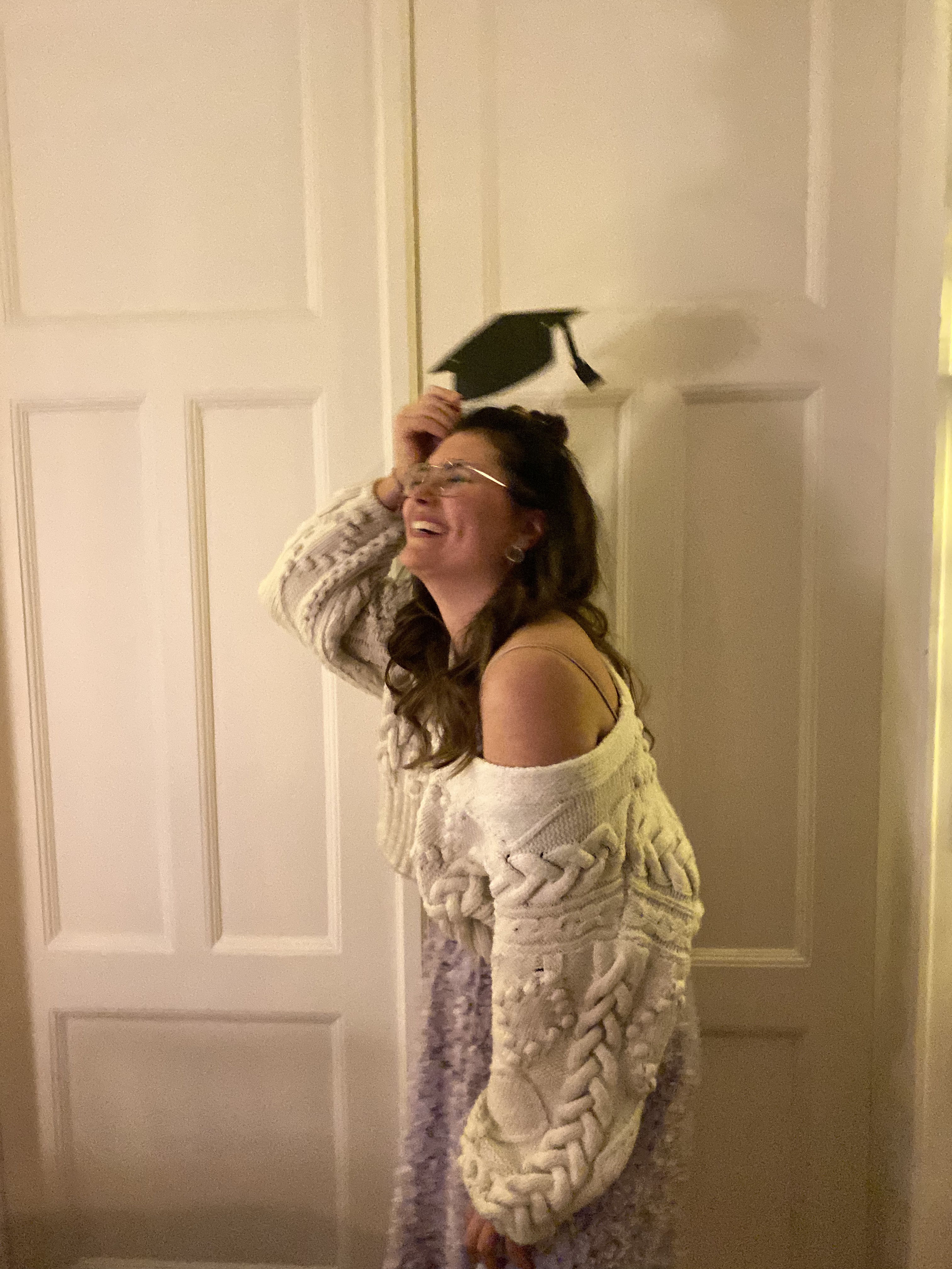 Meinen Uniabschluss!! Und ganz ehrlich? So richtig realisiert habe ich es immer noch nicht. Einer der prägendsten Abschnitte soll einfach vorbei sein, 6 Jahre Unizeit mit diesem Tag im Januar abgeschossen. Der Prüfungstag als solcher war auch einfach magisch schön, so unrealistisch das vielleicht auch klingen mag für so ne große Sache. Aber die wenigen Prüflinge die wir vor Ort waren, unsere Professoren selbst, die gemeinsame Erleichterung und die feierliche Stimmung an dem Tag, das gemeinsame Anstoßen und die private Minifeier in der Hochschule… es war wirklich besonders. Ich bin so unglaublich dankbar für diese Erfahrung. Das entschädigt fast, dass ich keine „richtige“ Zeugnisvergabefeier hatte, nur via Zoom vom Wohnzimmer aus, was auch auf ne art seinen Reiz hatte.