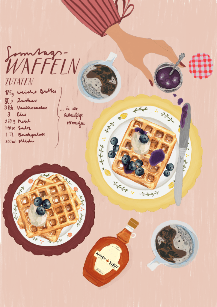Und wir alle kennen sie, die Waffeln unserer Kindheit und doch vergesse ich immer wieder, wie einfach der Teig eigentlich ist und wie schnell ein Hyggemoment gebacken werden kann. Falls es euch genau so geht: hier einmal das einfachste Glücksrezept der Welt.